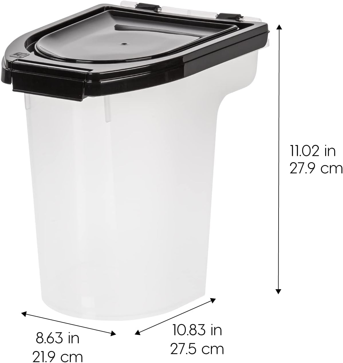 IRIS USA 6.5 Lbs / 8 Qt WeatherPro Airtight Pet Food Storage Container/Treat Box for Dog Cat and Bird Food, Keep Fresh, Translucent Body, Easy Clean Up, BPA free, Clear/Black