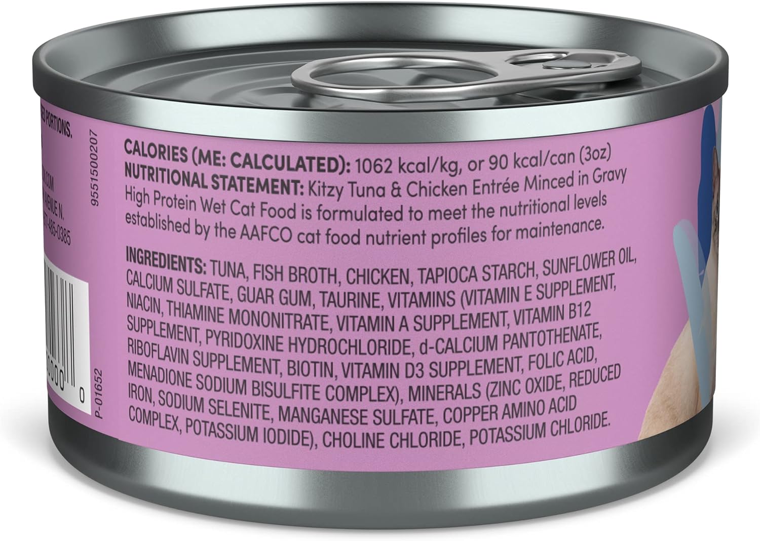 • CONTAINS: 24  pack of 3 oz cans of Kitzy wet cat food, Tuna & Chicken Entrée Minced in Gravy