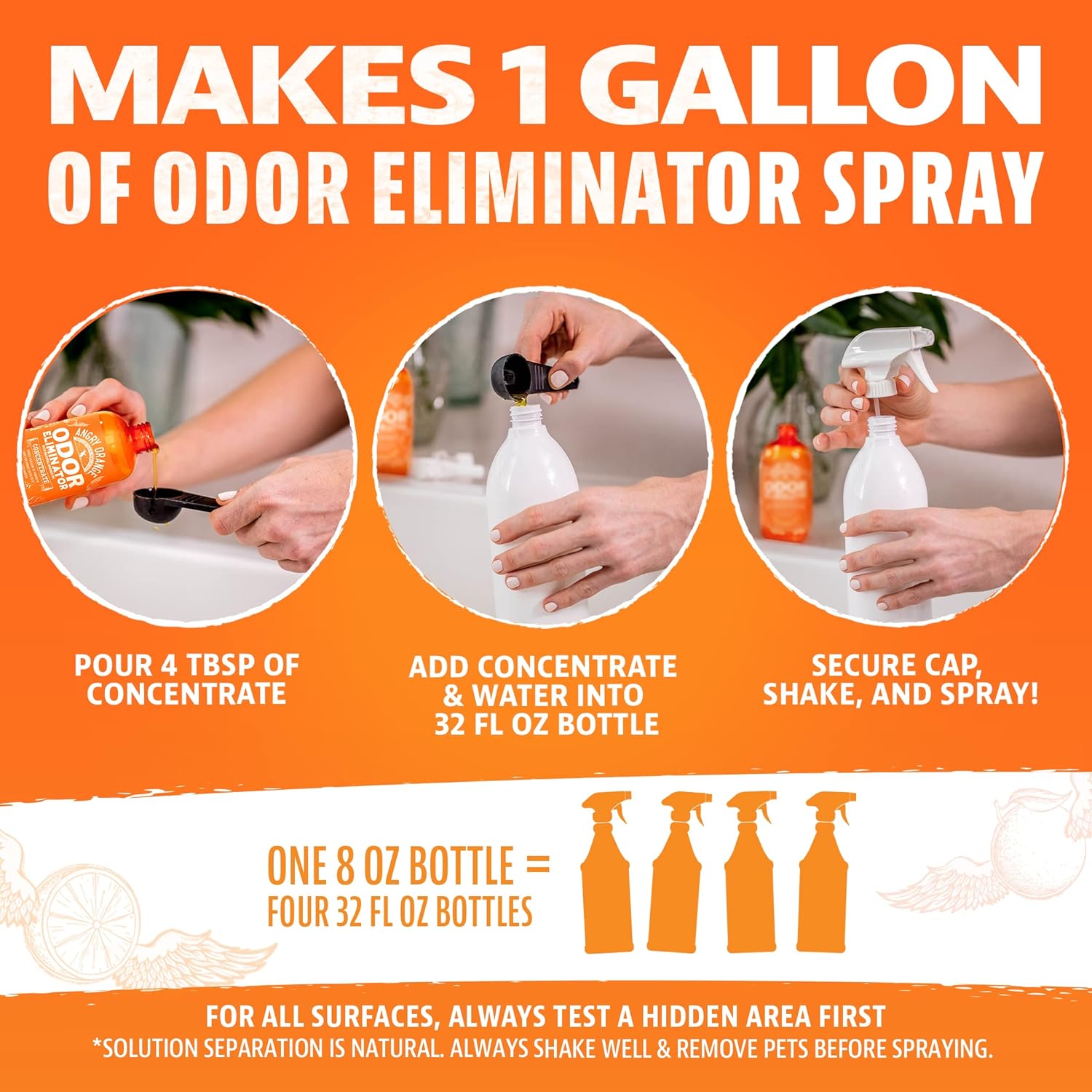 Angry Orange Pet Odor Eliminator for Home – 8oz Dog and Cat Pee Smell Remover for Carpet, Grass, Tile and Furniture – Citrus Concentrate, Makes 128oz of Liquid