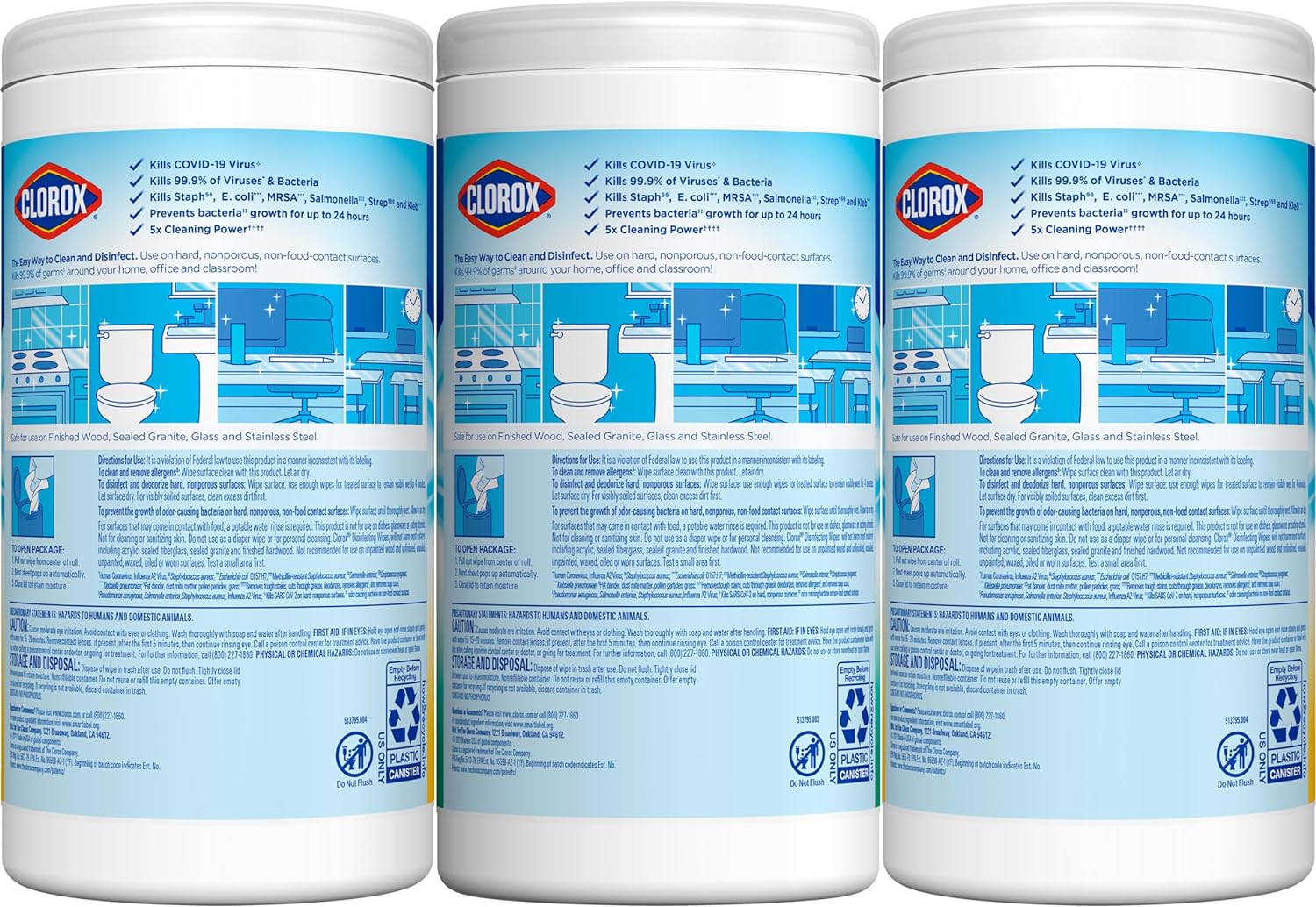 DISINFECTING WIPES: Clorox Disinfecting Wipes are proven to kill COVID 19 Virus* in 15 seconds; cleans and kills 99.9% of viruses and bacteria with powerful, 5x cleaning power* wipe; Package may vary