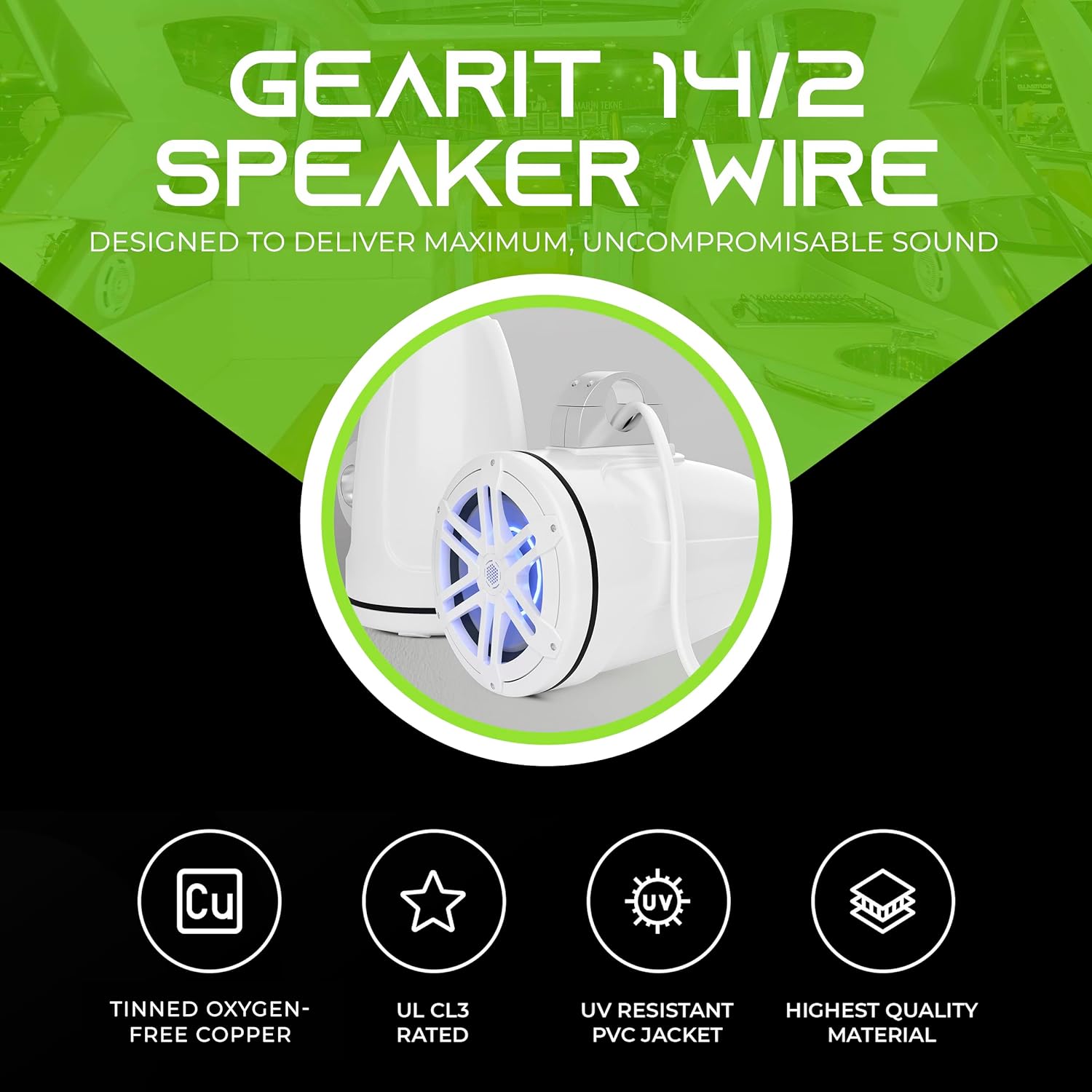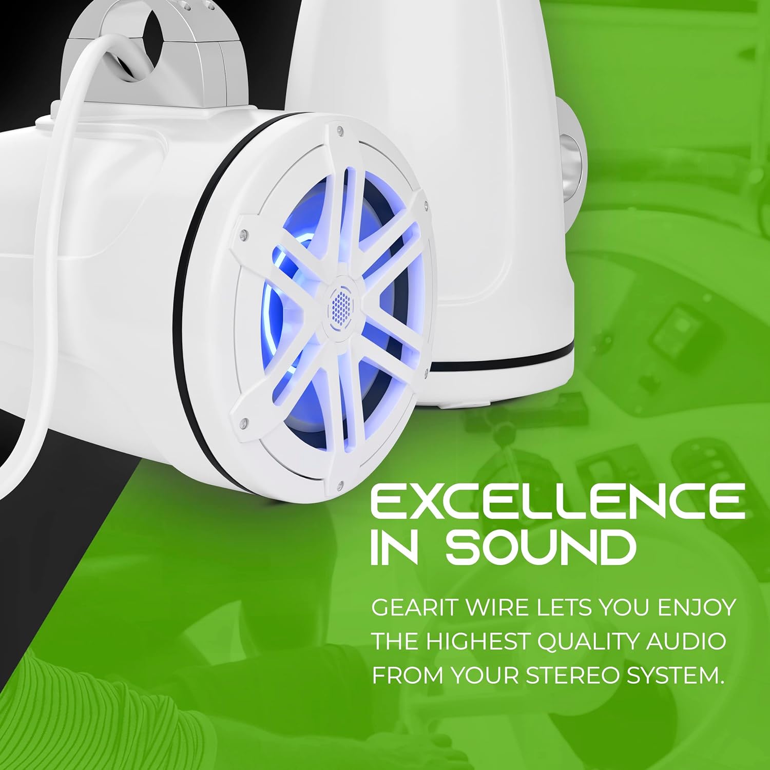 • FOR MARINE BOAT SPEAKERS, BOAT CABLE – Our GearIT boat wire cable comes in 25ft, 50ft, 100ft, 125ft, 150ft, 200ft lengths and black colored trailer wire. Search on Amazon for GearIT 14 AWG Marine Speaker Cables to find all our 14 ga marine speaker wires. All GearIT marine boat speaker copper wires come with a limited lifetime warranty.
