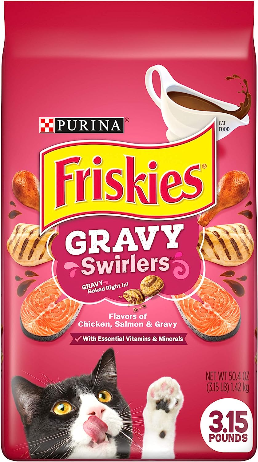 / Purina Friskies Dry Cat Food, Gravy Swirlers – 3.15 lb. Bag