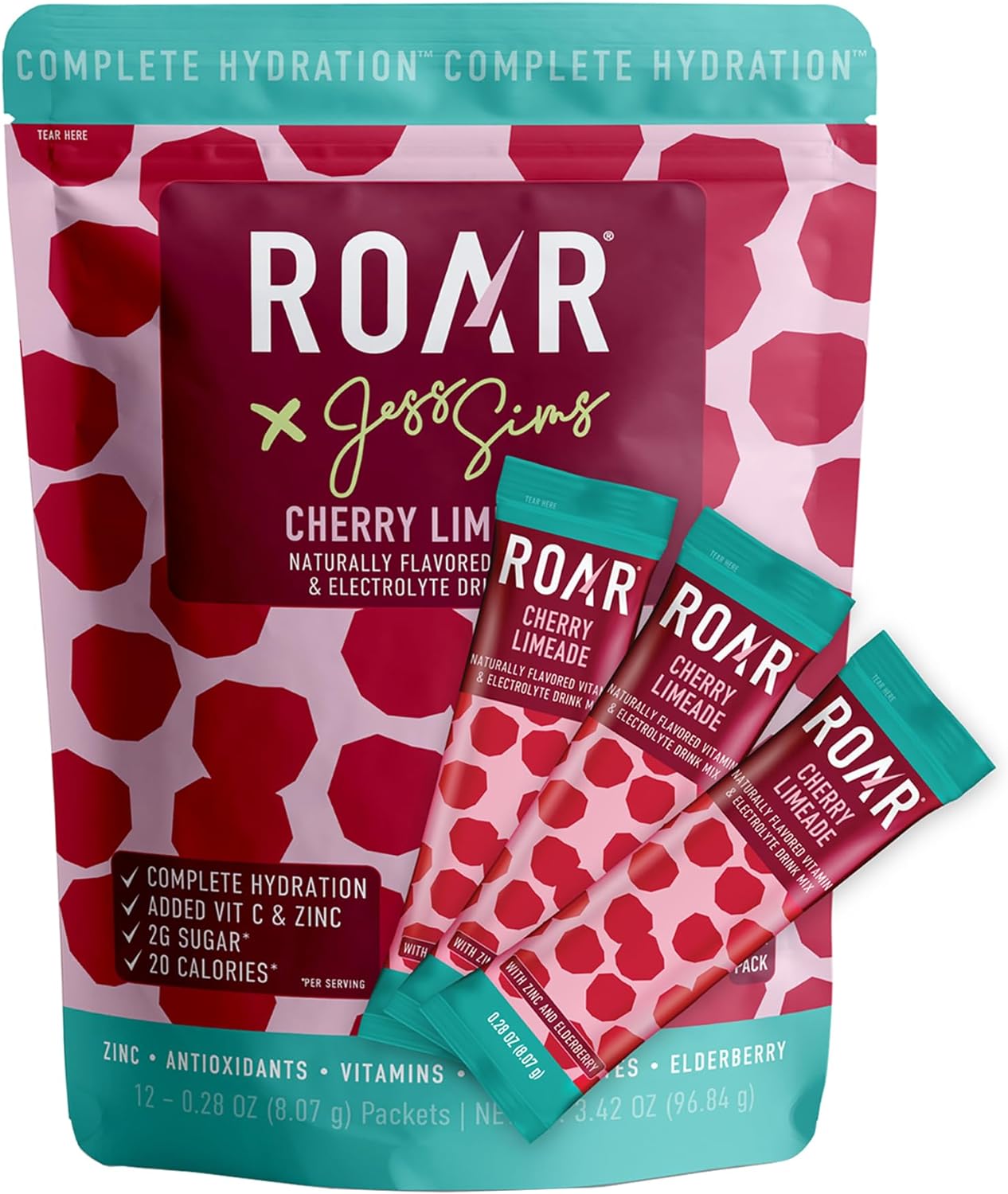 ROAR Complete Hydration Powder Plus – Hydration Packets with Zinc and Elderberry – Electrolytes Powder No GMOs, Gluten Free – Cherry Limeade – 12 pc